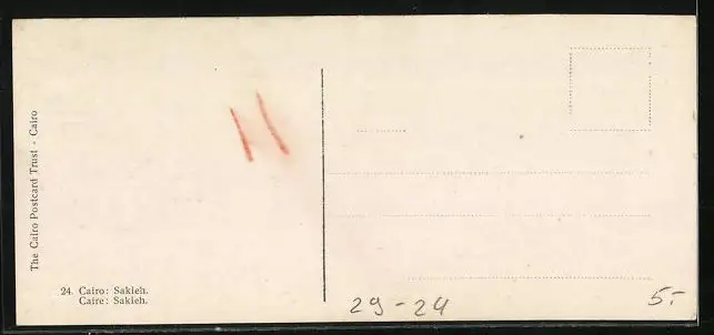 Personenbezogene Daten auf der Rückseite der Karte wurden durch blauen Textmarker unkenntlich gemacht. Die blauen Stellen sind auf die Vorderseite durchgeweicht und wirken sich negativ auf das Postkartenfoto aus