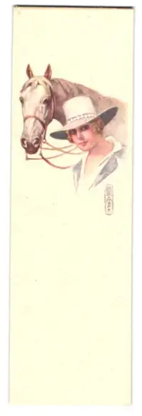 Mini-AK Dame mit weissem Hut