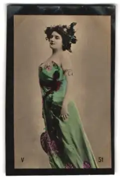 Mini-AK Junge Frau im Kleid mit markantem Kopfschmuck
