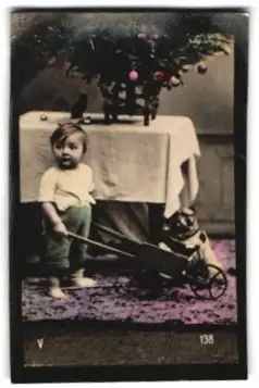Mini-AK Kind mit einer Spielzeugschubkarre