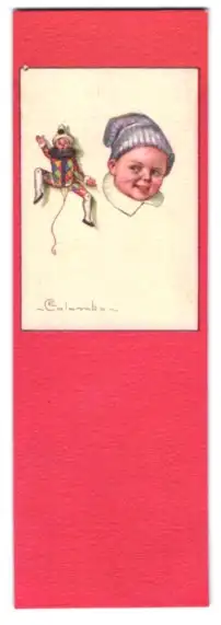 Mini-AK Kleiner Junge mit Harlekin-Puppe