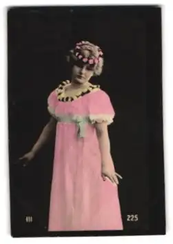 Mini-AK Mädchen im Kleid mit Blumenkranz im Haar