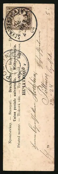 Personenbezogene Daten auf der Rückseite der Karte wurden durch blauen Textmarker unkenntlich gemacht. Die blauen Stellen sind auf die Vorderseite durchgeweicht und wirken sich negativ auf das Postkartenfoto aus