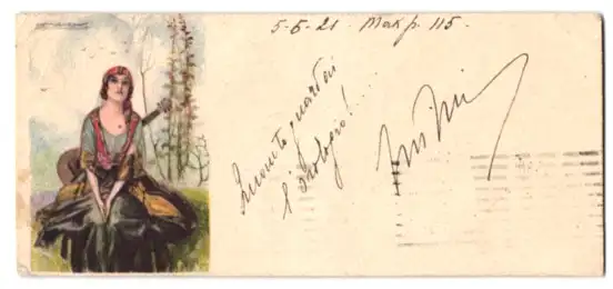 Mini-AK Schöne Zigeunerin mit Gitarre