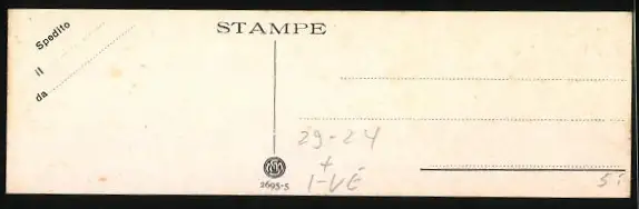 Personenbezogene Daten auf der Rückseite der Karte wurden durch blauen Textmarker unkenntlich gemacht. Die blauen Stellen sind auf die Vorderseite durchgeweicht und wirken sich negativ auf das Postkartenfoto aus