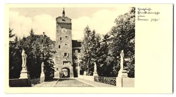 Mini-AK Waldshut am Hochrhein, Oberes Tor mit Brücke und Statuen