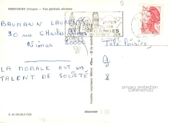 Mirecourt Vue aérienne Mirecourt postalisch gelaufen 1987 Erhaltung siehe scans [FriedD77] Frierer