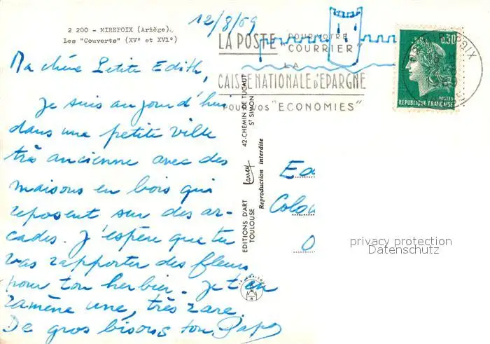 Mirepoix_Ariege Les Couverts Mirepoix Ariege postalisch gelaufen 1969 Erhaltung siehe scans [FriedD77] Frierer