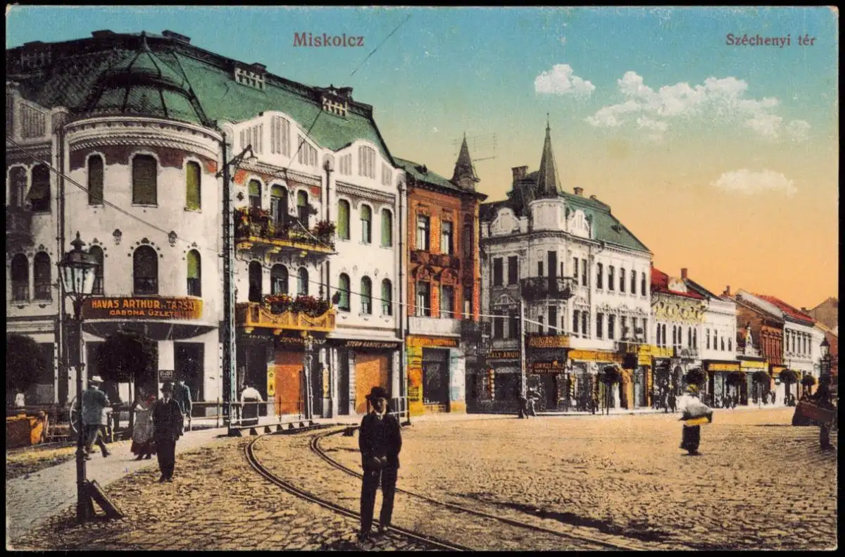 Miskolc Miskolc (Miškovec/Miszkolc) Széchenyi tér - Geschäfte 1913