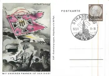 Mit Unseren Fahnen ist der Sieg Strassburg Privatganzsache Elsaß o 1941