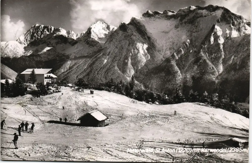 Mittenwald Umlandansicht Partie St. Anton mit Karwendel Berg 1957