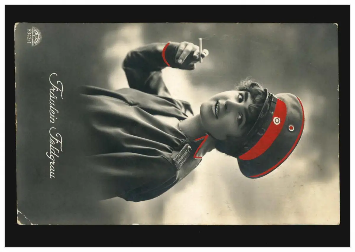 Mode-AK Fräulein Feldgrau - Rauchende Frau in Uniform, CREFELD 17.10.1915