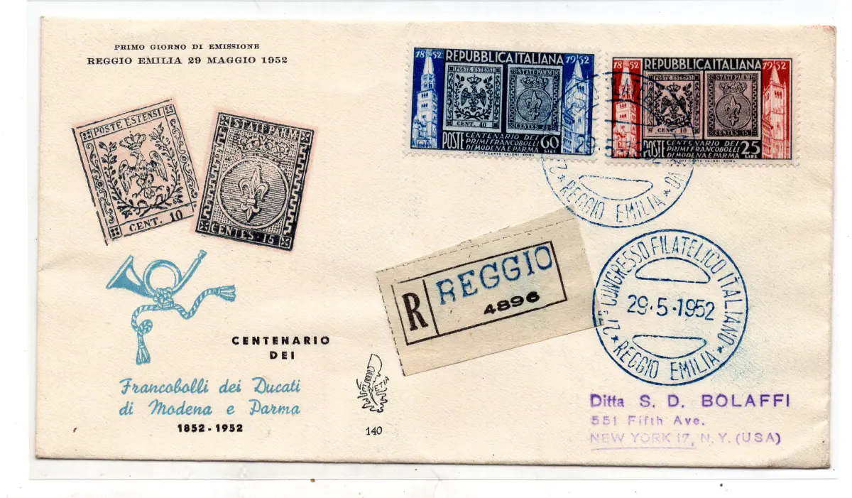 BUSTA - Modena e Parma n. 689/690 Serie auf Einschreiben für die USA mit Ankunftsstornierung - Ungewöhnlich für Spezialisten Cod.511/182
