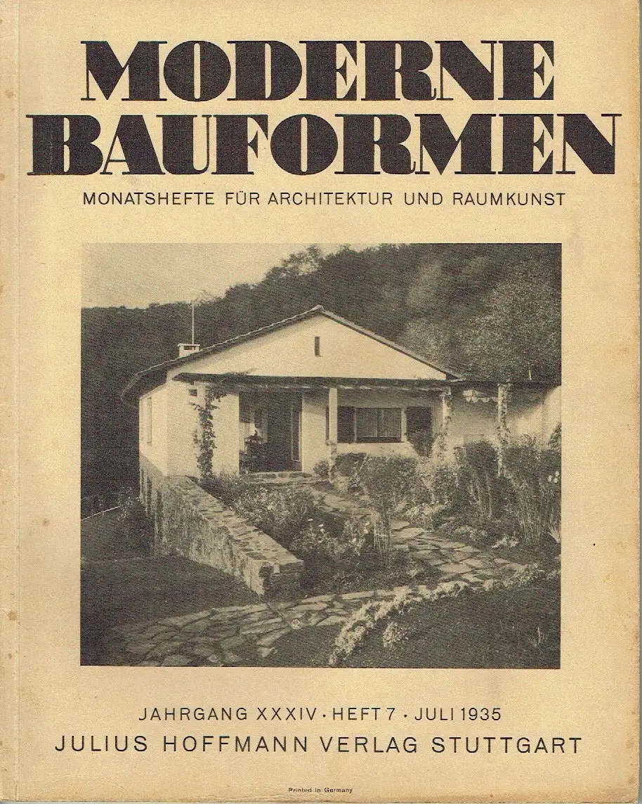 guter bis sehr guter Zustand, geringe Gebrauchs- und Alterungsspuren: Umschlag etwas vergilbt / gering verschmutzt - Seiten überwiegend sauber und ordentlich - Umschlag und Seiten teils etwas eselsohrig - Rückseite rechts 1 cm eingerissen, Einfamilienhäuser - Josef Op Gen Oorth, Köln. Wohnhäuser bei Köln am Rhein (26 Seiten) - Walter Loeffler, Berlin. „Kleines Wohnhaus" (5 Seiten) - Räume und Möbel - Hans Heinz Lüttgen, Köln. Wohnräume (5 Seiten) - Hugo Kämmerer, Berlin. Eine Zweizimmerwohnung (4 Seiten) - Hans Smetana, Mähr.-Ostrau. Likörschrank - Gaststätte in Köln - Hans Heinz Lüttgen, Köln. „Grill am Ring" (10 Seiten) - Farbige Raumentwürfe - Hugo Kämmerer, Berlin. Schlafzimmer einer Zweizimmerwohnung - Hans Stierhof, Moosbach b. Nürnberg. Vorhalle eines Landsitzes - Mitteilungen aus der Fachwelt, kartoniert, ca. 23 x 29, 52 Seiten mit zahlreichen Bildern und 2 Farbtafeln + 12 Seiten Mitteilungen aus der Fachwelt