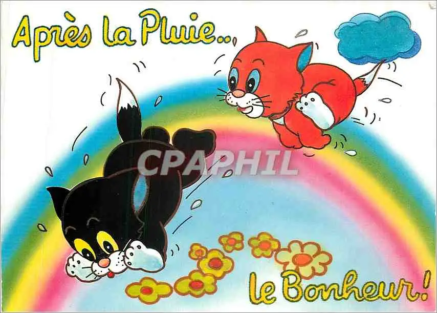Cartes postales moderne Apres la Pluie Le Bonheur Chats Chatons