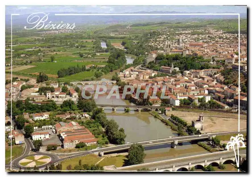 Cartes postales moderne Beziers vue generale au fond le pont vieux 12e siecle