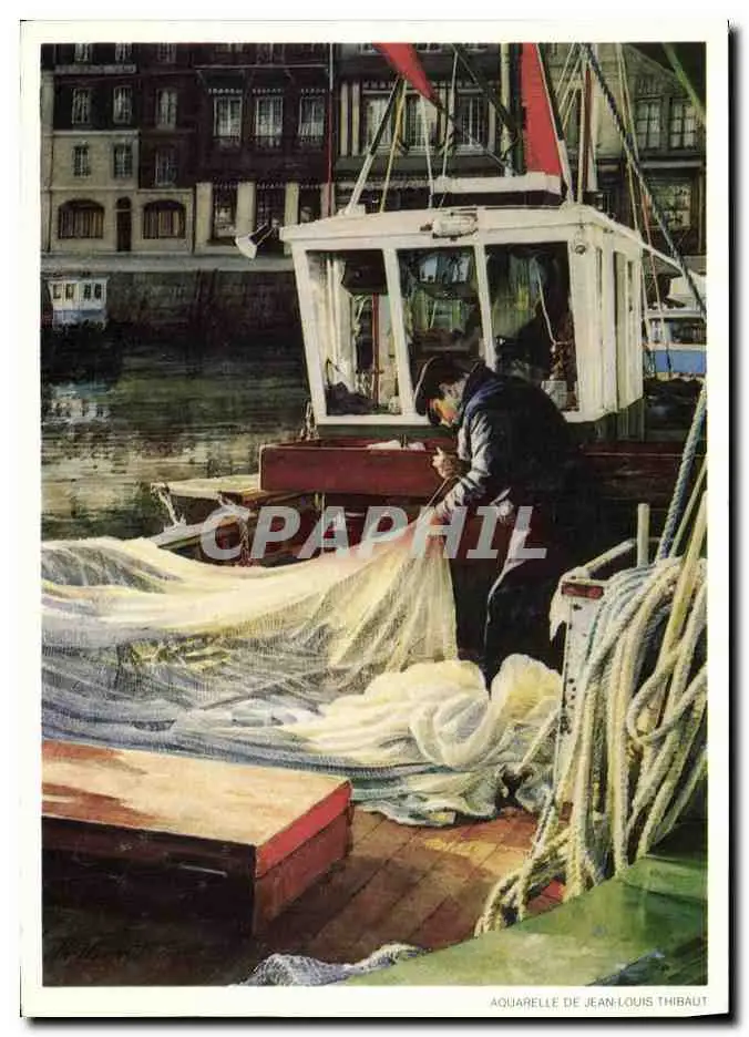 Cartes postales moderne Honfleur Ravaudage des filets Bateau