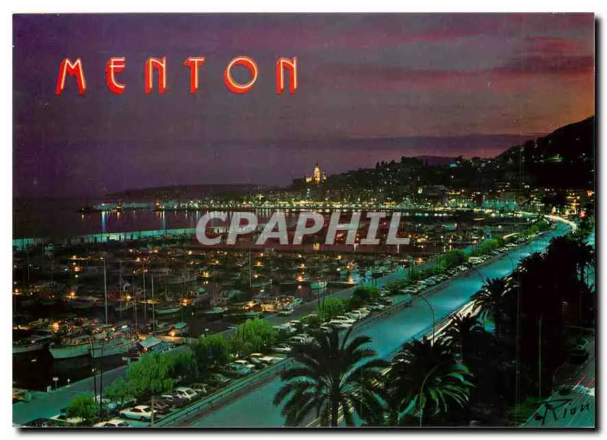 Cartes postales moderne La cote d'Azur inoubliable Menton Vue generale la nuit