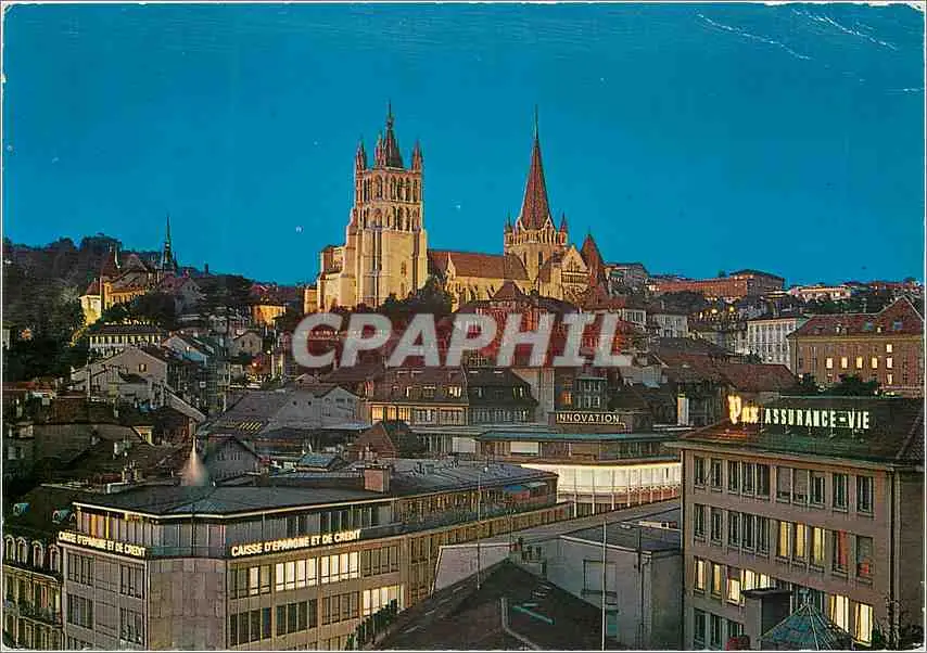 Cartes postales moderne Lausanne Vue nocturne de la cathedrale