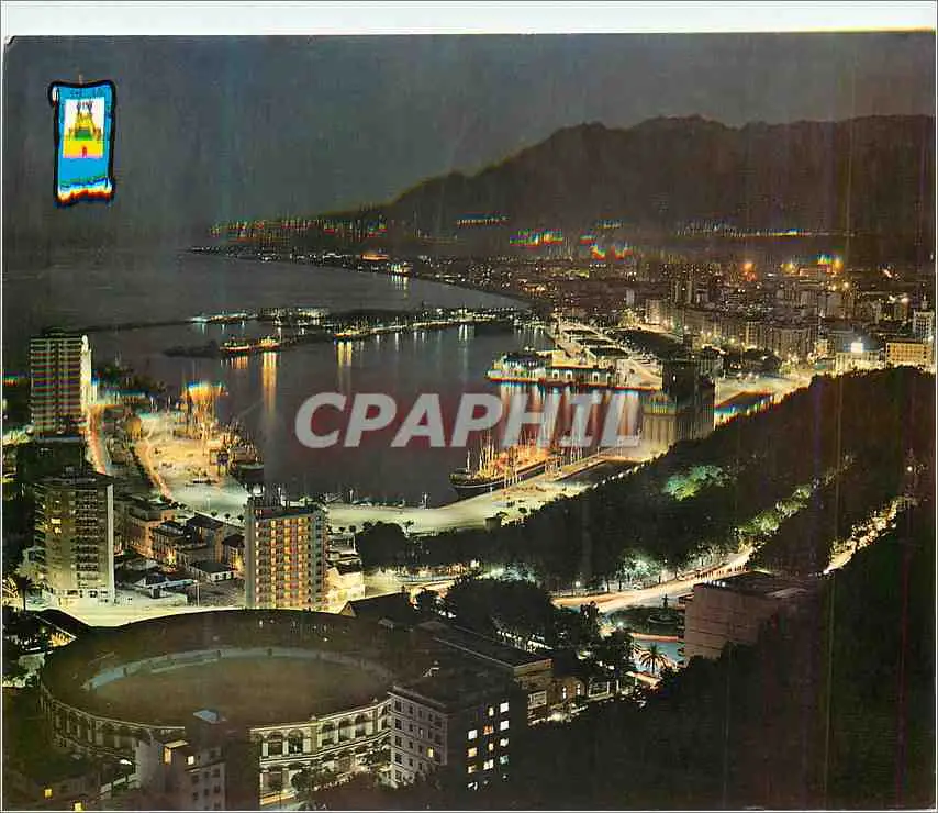 Cartes postales moderne Malaga Vue Nocturne du Port Et Place de Taureaux