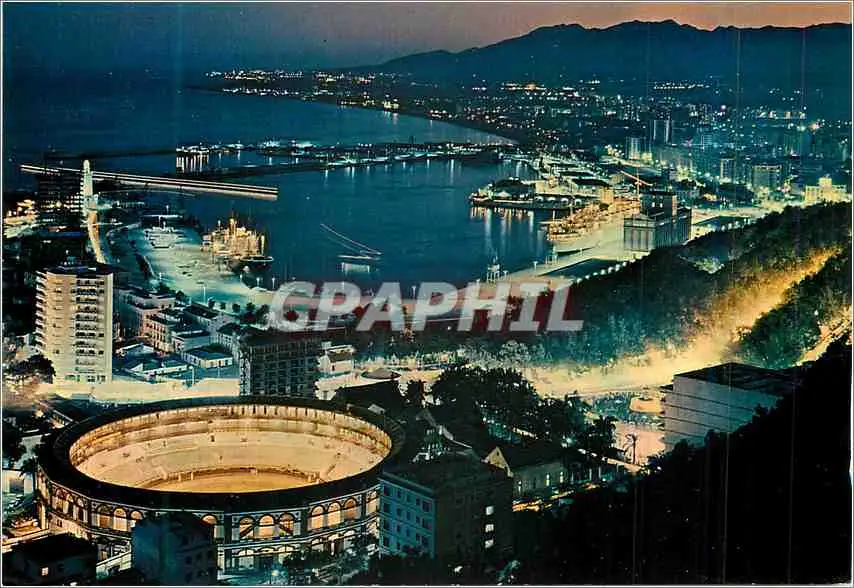 Cartes postales moderne Malaga Vue Partielle la Nuit Corrida Arenes