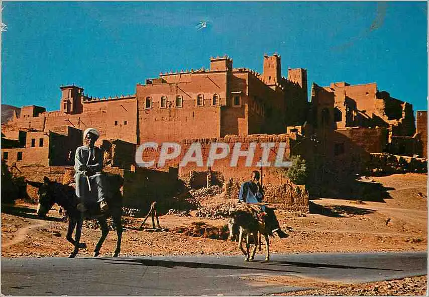 Cartes postales moderne Maroc typique Kasbah dans la vallee du Draa Ane Donkey