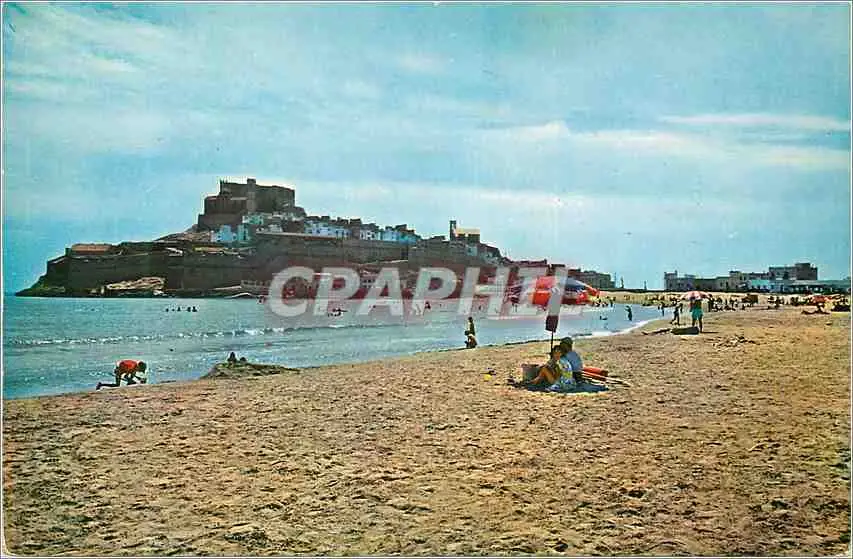 Cartes postales moderne Peniscola un coin de la plage et vue du rocher