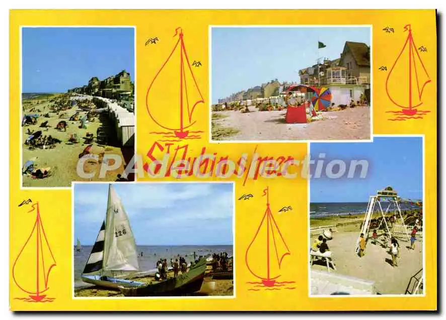 Moderne Karte Saint Aubin Sur Mer plage voilier jeux d'enfants