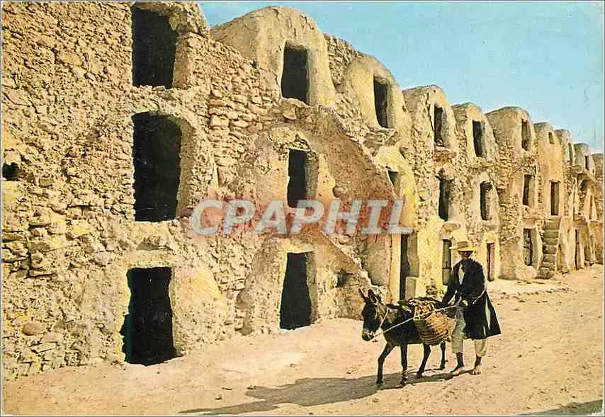 Cartes postales moderne Tunisie Medenine les Ghorfas Ane Donkey