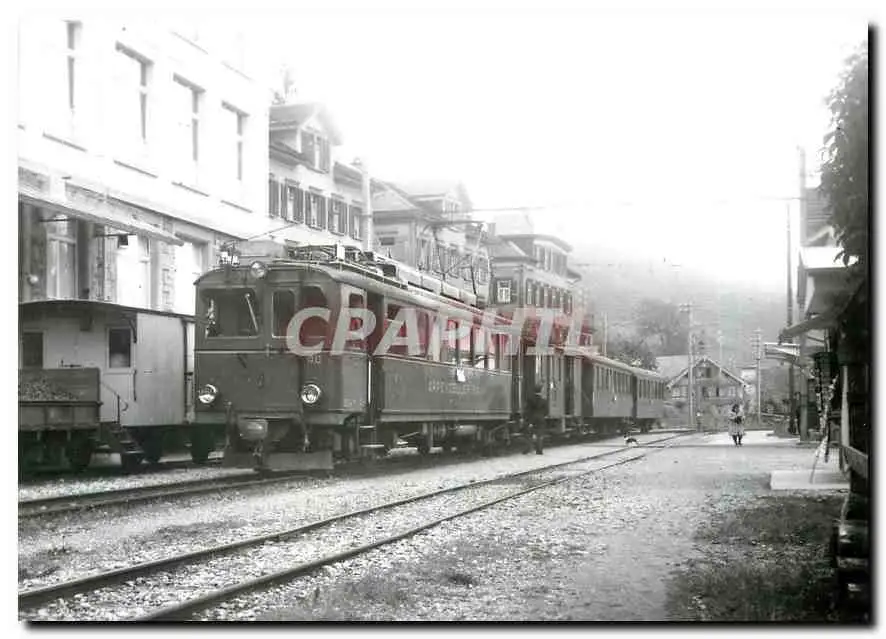 Cartes postales moderne Uebergangsstaidum um 1950: AB BCe 4/4 mit neuer Nummer und braunem Anstrich mit Personenzug in W