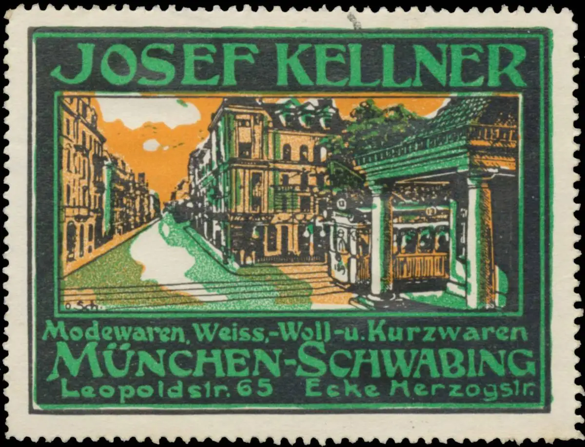 Weiss-, Woll- und Kurzwaren, Schwabing, Leopoldstraße 65, grün, Größe/Zustand: 5x7 , guter Zustand, Original alte Reklamemarke die seinerzeit für die Werbung benutzt wurde