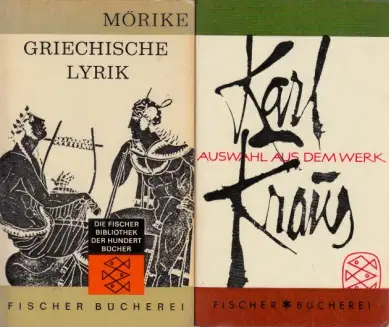 das andere Buch ist Erscheinungsjahr 1961, die Seiten sind gebräunt, die Einbandkanten sind bestoßen, aus dem Inhalt: Griechische Lyrik von Eduard Mörike: Homerische Hymnen - Kallinos und Tyrtaios - Theognis - Anakreon - Anakreontische Lieder - Theokrit - Bion - Moschos. Auswahl aus dem Werk von Karl Kraus: "Kraus war ein Meister des erledigenden Zitats. Er hatte eine unheimliche Fertigkeit, Sünder gegen Geist und Sprache in einer Schlinge, aus jener eigenen Worte geknüpft, zu fangen .. ." Alfred Polgar urteilt so über Karl Kraus, den Satiriker und Kritiker, dessen geschliffener, pointierter, glasklarer Stil gefürchtet war. Die Reinheit der Sprache war für ihn Voraussetzung für die Reinheit des Geistes.... (aus den Büchern) Beschreibung vom Antiquariat Ardelt 4g3b Antiquariat Ardelt