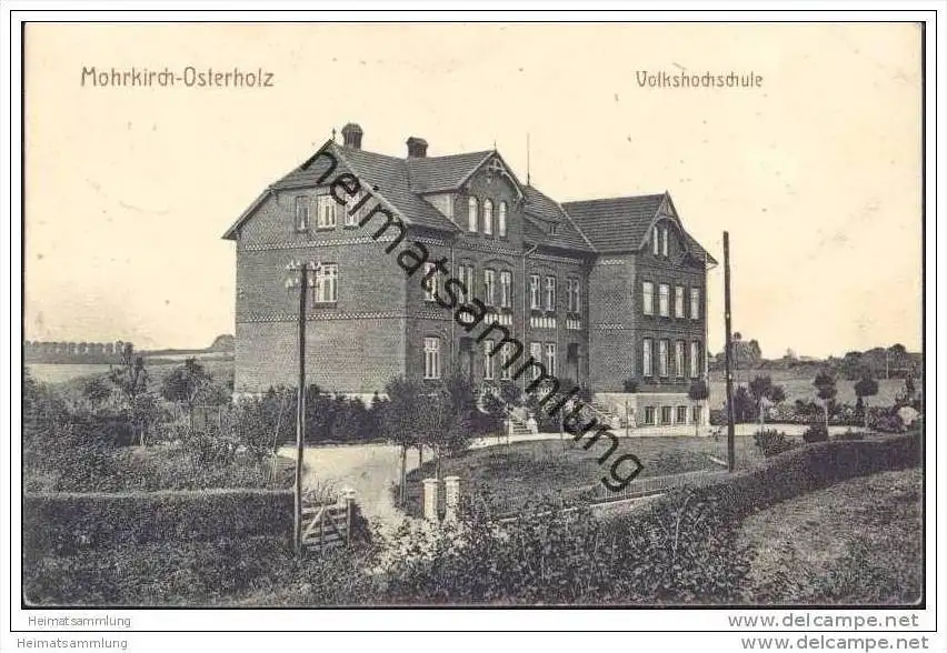 Mohrkirch-Osterholz - Volkshochschule - Verlag Pauline Hansen Kurzwarengeschäft Mohrkirchen-Osterholz - Eckknick oben rechts (E50285) gel. 1914