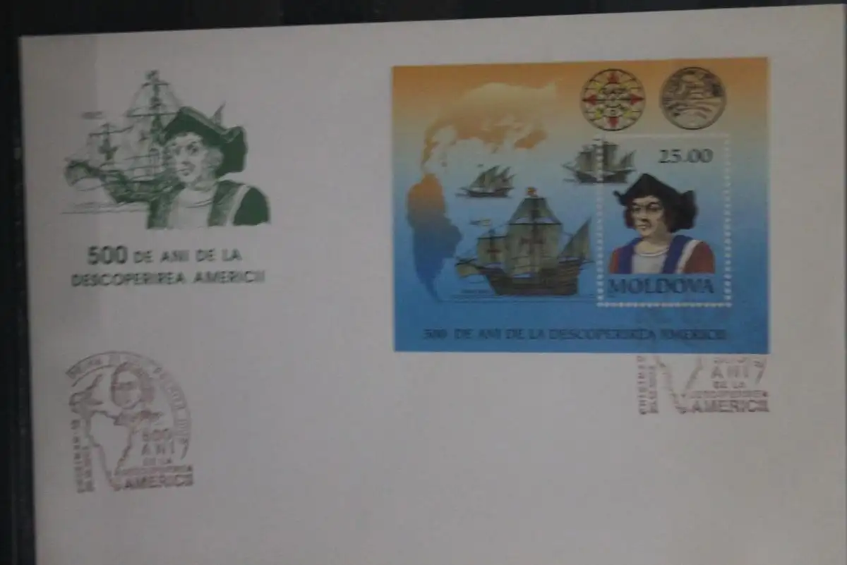 Moldova, Entdeckung Amerikas, Columbus, Block, 1992 auf FDC