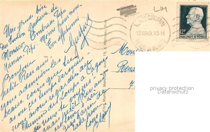 Monaca Le Palais du Prince Monaca postalisch gelaufen 1949 Erhaltung siehe scans [LiesaD40] LiesID40