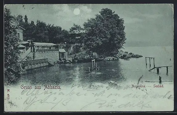 Mondschein-AK Abbazia, Angiolina-Seebad