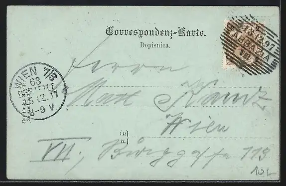 alte Ansichtskarte, gelaufen 1897, Eckknick re. oben, guter Zustand