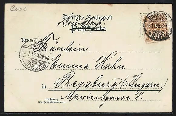 alte Ansichtskarte, gelaufen 1898, guter Zustand