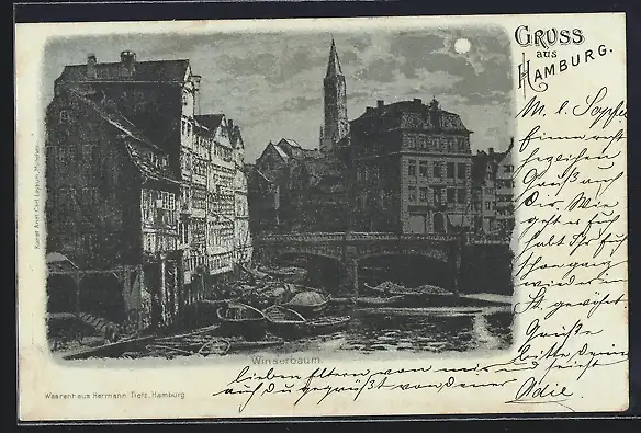 Mondschein-AK Alt-Hamburg, Winserbaum-Partie bei Nacht