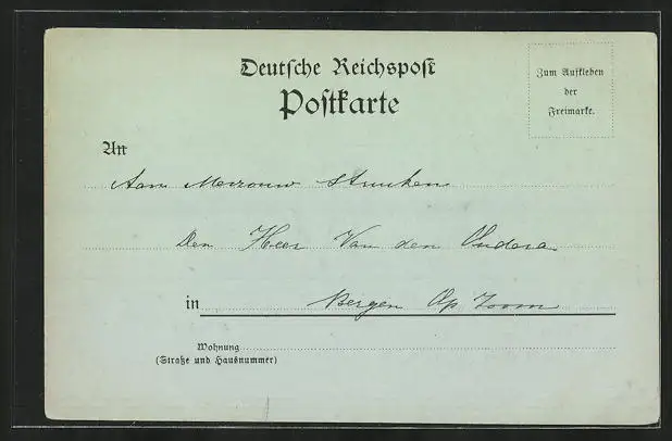Personenbezogene Daten auf der Rückseite der Karte wurden durch blauen Textmarker unkenntlich gemacht. Die blauen Stellen sind auf die Vorderseite durchgeweicht und wirken sich negativ auf das Postkartenfoto aus