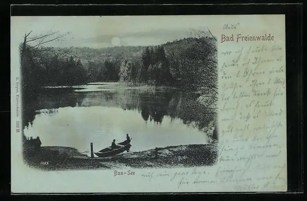 Mondschein-AK Bad Freienwalde, Blick auf den Baa-See