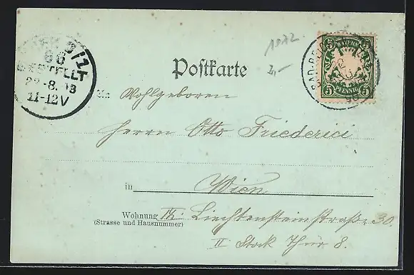 alte Ansichtskarte, gelaufen 1898, Eckknick oben li., guter Zustand