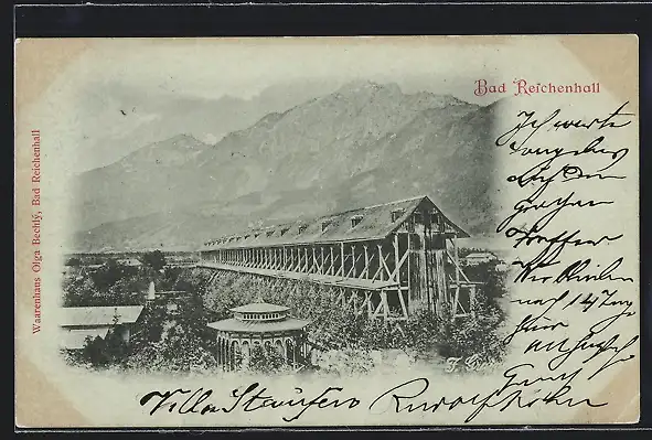 Mondschein-AK Bad Reichenhall, Teilansicht mit Bergpanorama