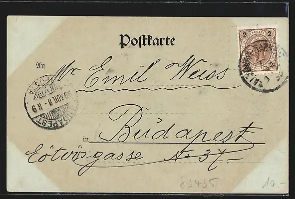 alte Ansichtskarte, gelaufen 1899, Eckknick re. unten, guter Zustand
