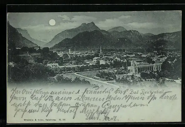 Mondschein-AK Bad Reichenhall, Totalansicht