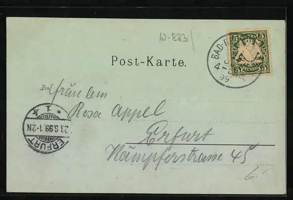 alte Ansichtskarte, gelaufen 1899, guter Zustand
