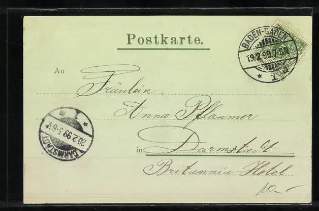 alte Ansichtskarte, gelaufen 1899, Eckknick li. unten, guter Zustand