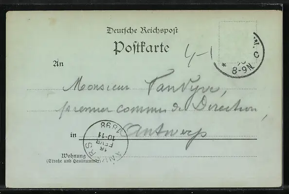 alte Ansichtskarte, gelaufen 1898, Briefmarke entfernt, Eckknick unten rechts, guter Zustand