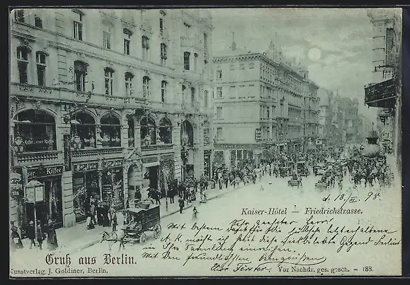 Mondschein-AK Berlin, Kaiser-Hotel in der Friedrichstrasse