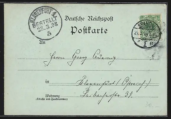 alte Ansichtskarte, gelaufen 1898, Eckknick li. oben, guter Zustand